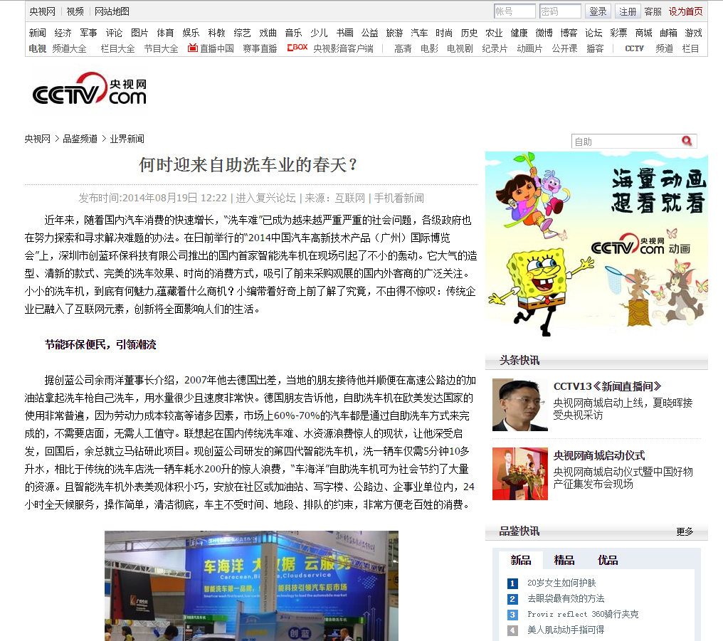 新華網(wǎng)、央視網(wǎng)專題報道車海洋智能自助洗車機