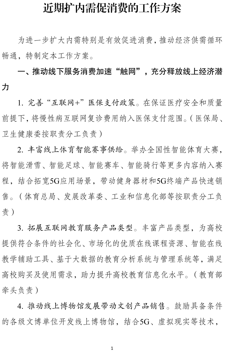 國(guó)家發(fā)展和改革委員會(huì)出臺(tái)《近期擴(kuò)內(nèi)需促消費(fèi)的工作方案》