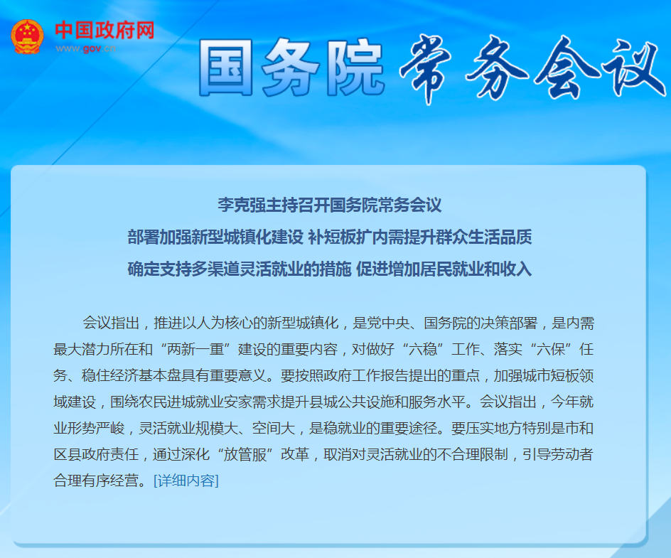 李克強主持召開國務(wù)院常務(wù)會議 部署加強新型城鎮(zhèn)化建設(shè) 補短板擴內(nèi)需提升群眾生活品質(zhì) 確定支持多渠道靈活就業(yè)的措施 促進(jìn)增加居民就業(yè)和收入 國務(wù)院總理李克強7月22日主..