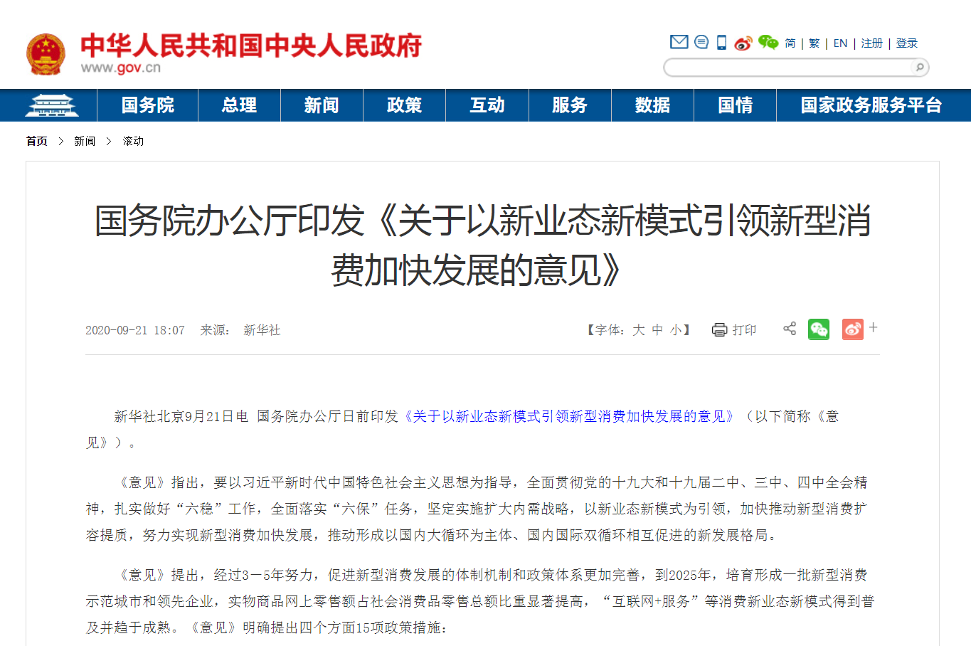 【重磅】國務(wù)院辦公廳印發(fā)《關(guān)于以新業(yè)態(tài)新模式引領(lǐng)新型消費加快發(fā)展的意見》