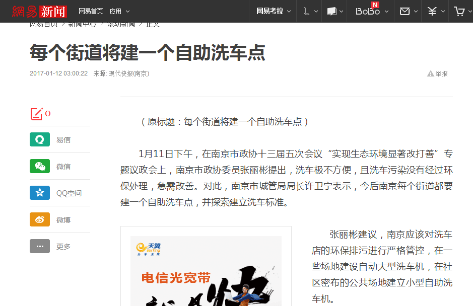 南京每個街道將建一個自助洗車點