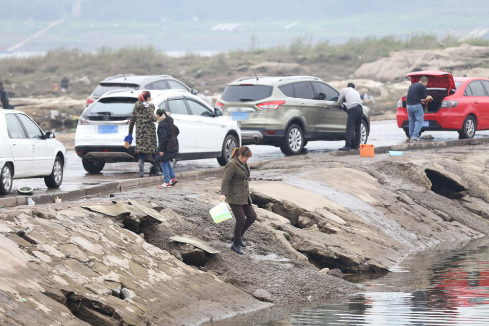 重慶碼頭成了自助洗車場 百余輛車排隊洗車