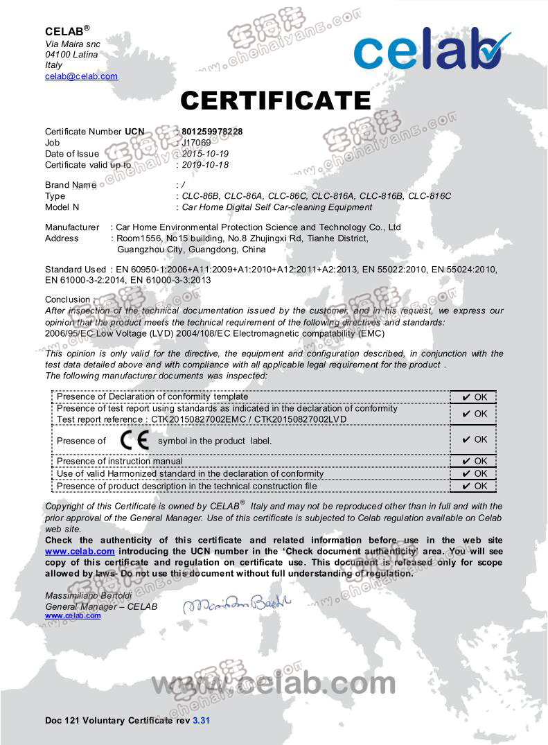 熱烈祝賀車海洋12款產(chǎn)品通過歐盟CE質(zhì)量安全認證 暨8月份車海洋獲得中國綠色環(huán)保產(chǎn)品、國家科技創(chuàng)新節(jié)能產(chǎn)品、政府綠色采購清單入選企業(yè)等多個國家級證書后,再一次獲得重量級證書:歐盟CE質(zhì)量安全..