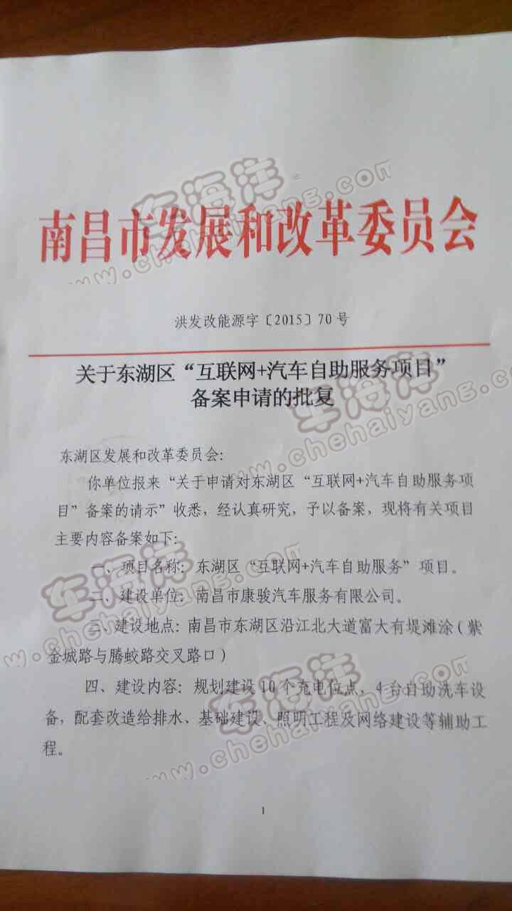 熱烈祝賀車海洋智能自助洗車項目獲得江西省南昌市發(fā)改委立項批復(fù)!
