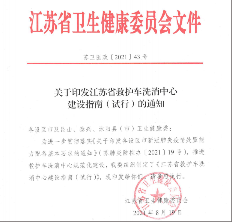 ▲《江蘇省救護(hù)車洗消中心建設(shè)指南(試行)》