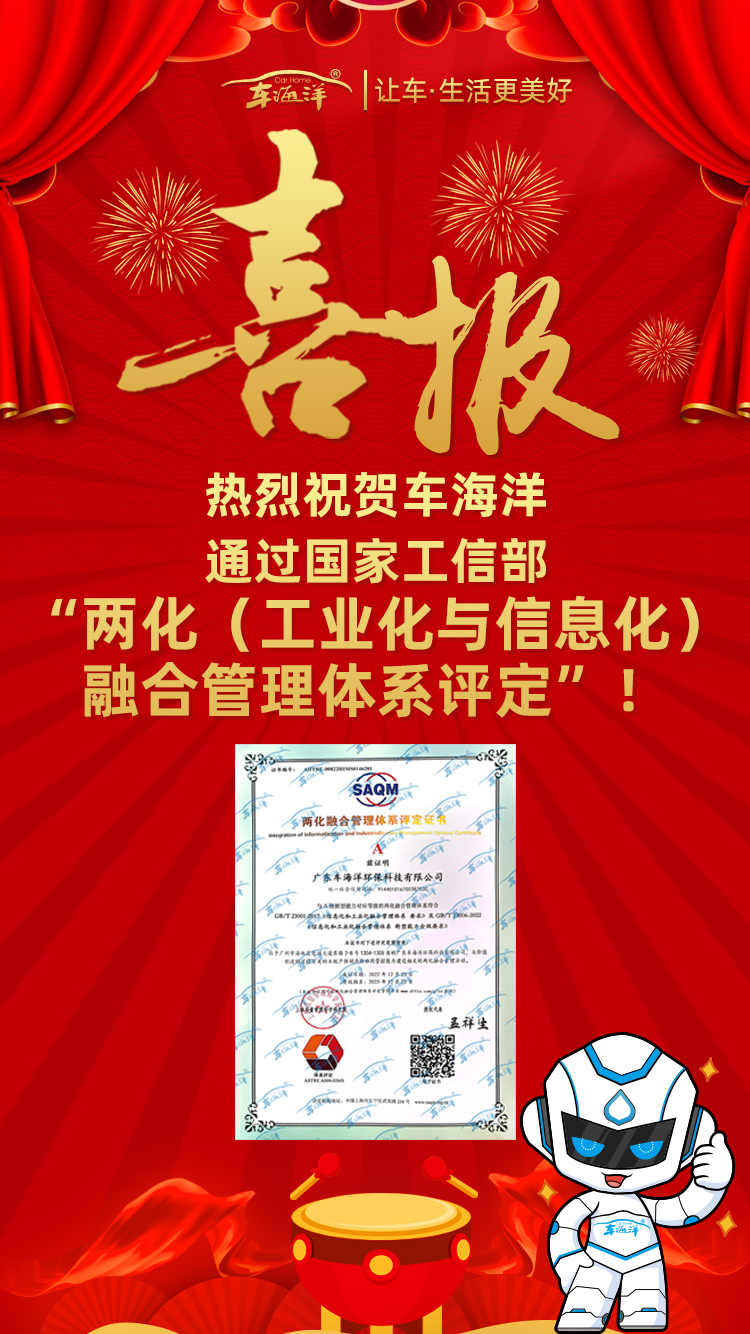 近日,廣東車海洋環(huán)??萍加邢薰荆ㄒ韵潞喎Q“車海洋”)兩化融合管理體系順利通過國家工業(yè)和信息化部(以下簡稱“國家工信部”)評審和公示,榮獲由國家工信部授權(quán)的評定機構(gòu)頒發(fā)的兩化融合管理體系評定證書。