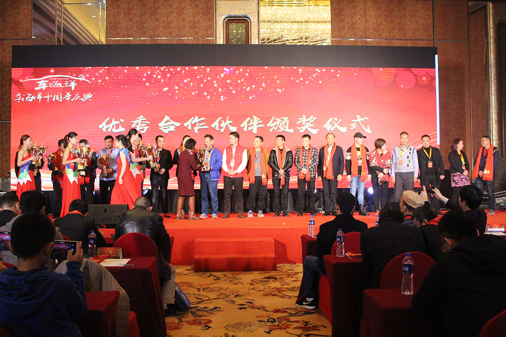 感恩十年,一路有您。來(lái)自全國(guó)各地的車海洋合作伙伴們?yōu)檐嚭Q笾悄芟窜嚲W(wǎng)點(diǎn)的落地立下了汗馬功勞,正是他們?nèi)找岳^夜的付出,讓車海洋的品牌號(hào)召力及社會(huì)聲譽(yù)日益提高,成為億萬(wàn)車主洗車首選。慶典上,共有20名合作伙伴榮獲“車海洋優(yōu)秀合作伙伴”的光榮稱號(hào)。優(yōu)秀合作伙伴代表在獲獎(jiǎng)感言中表示,正是優(yōu)勢(shì)突出的行業(yè)地位、技術(shù)實(shí)力、政策支持與發(fā)展模式令他們毫不猶豫選擇了車海洋,事實(shí)證明他們的選擇無(wú)比正確;他們與車海洋是真正的同盟軍,沖鋒陷陣,舍我其誰(shuí)!