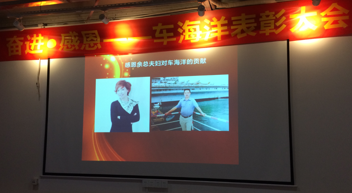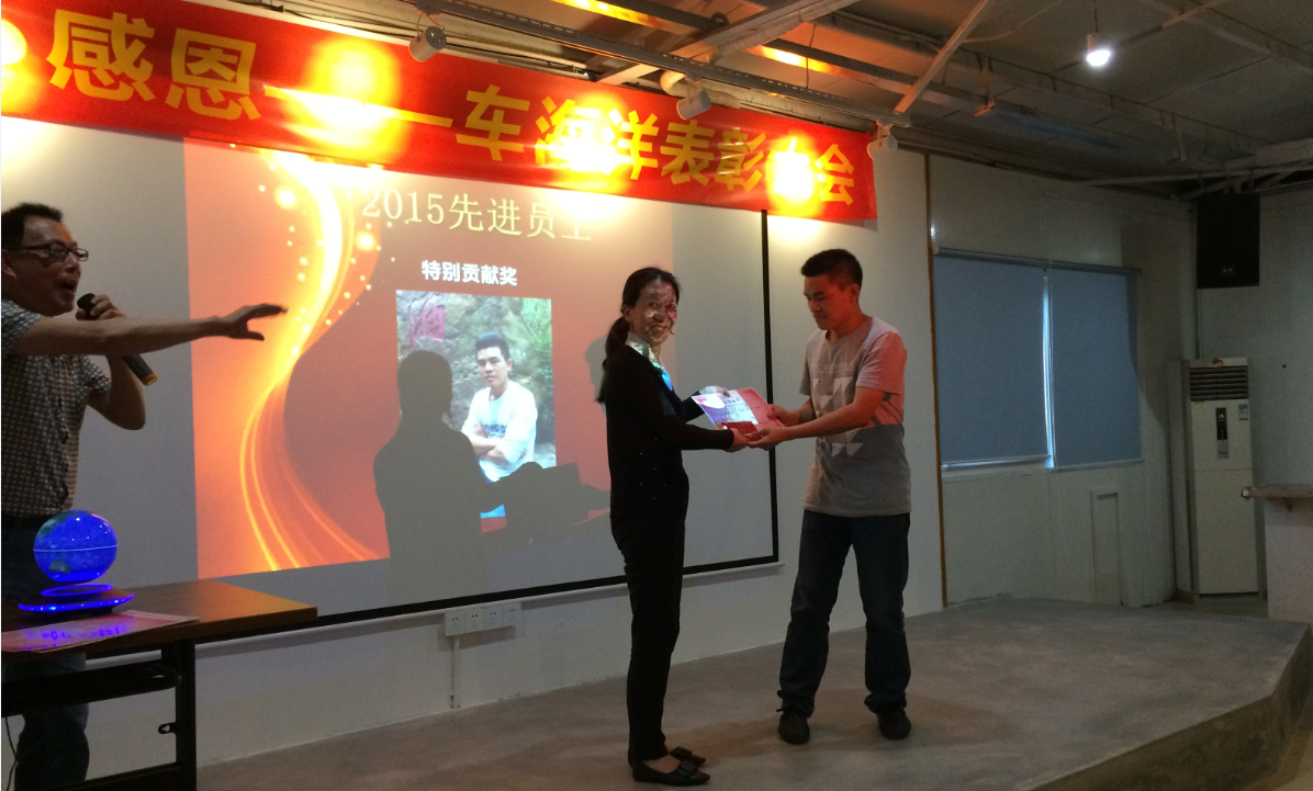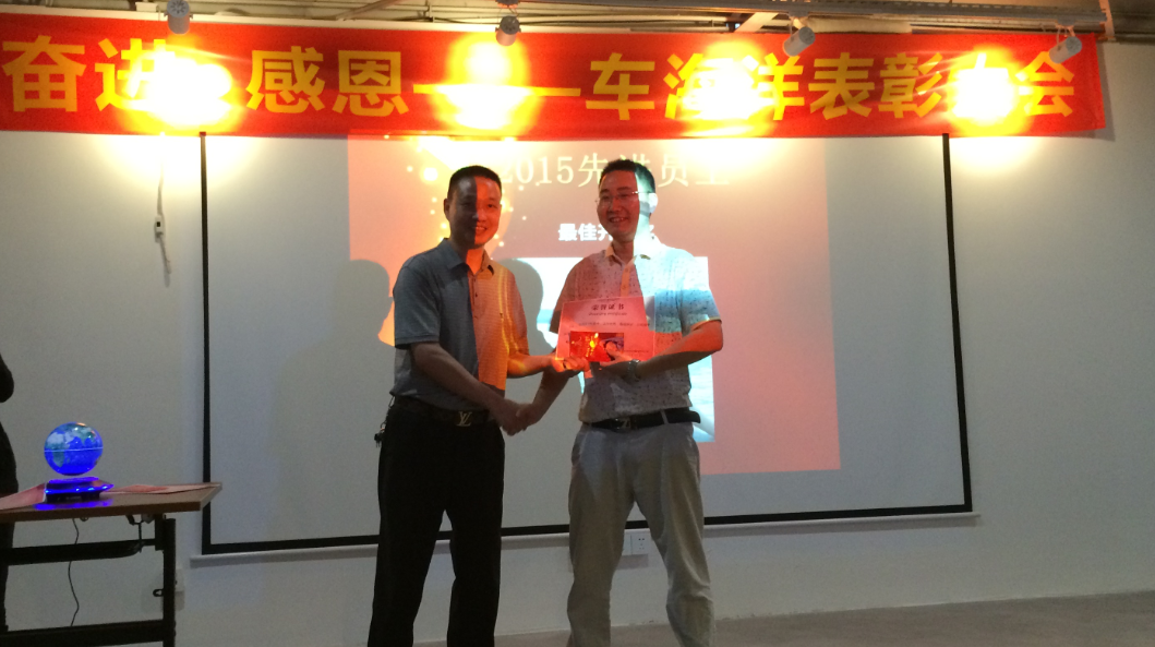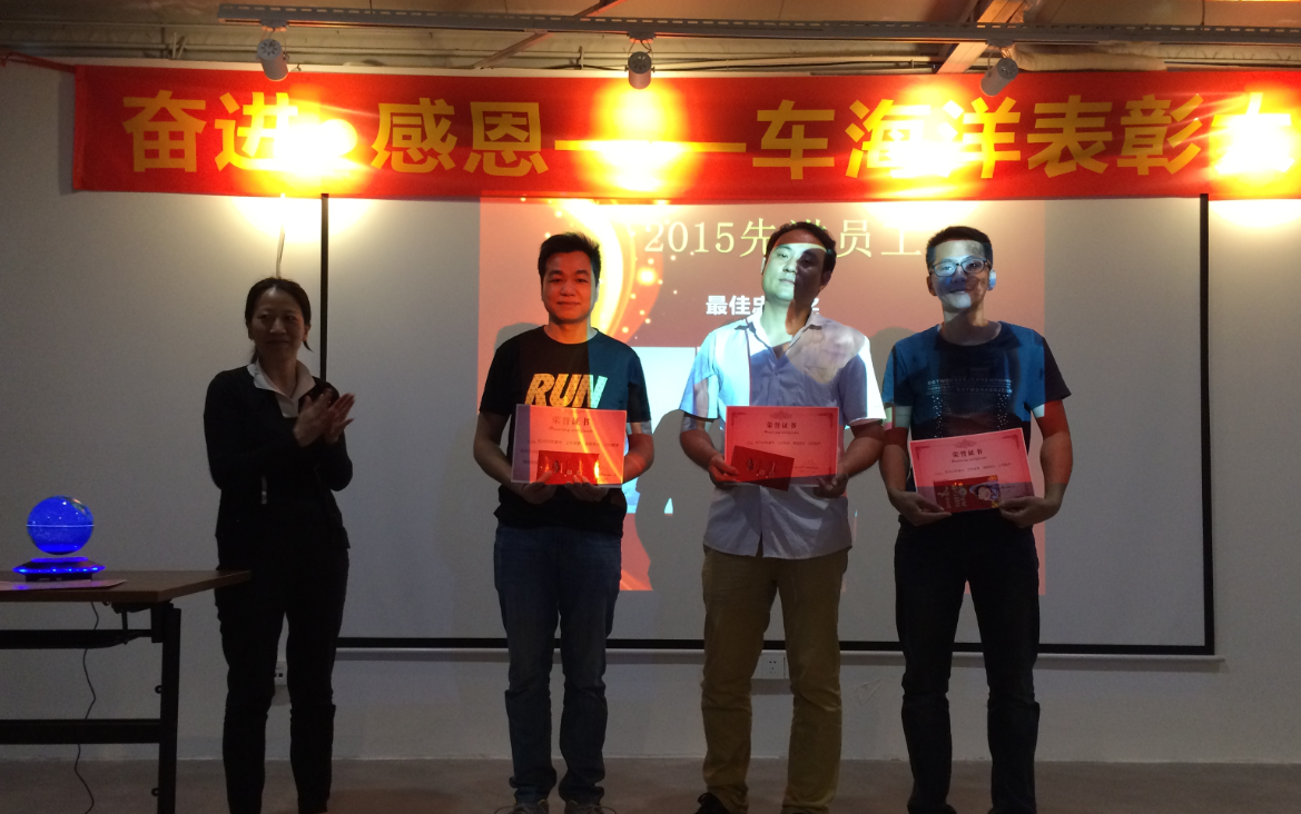 4月28日下午,車海洋對2015年表現(xiàn)優(yōu)秀的員工進(jìn)行了表彰,分別頒發(fā)了“突出貢獻(xiàn)獎”、“最佳忠誠獎”等十多個(gè)獎項(xiàng),同時(shí)對車海洋公司的創(chuàng)始人余宏義先生和蔡香平女士進(jìn)行了表彰,感謝他們對車海洋的付出與貢獻(xiàn)。最后,全體員工觀看了狼性團(tuán)隊(duì)視頻,告訴我們團(tuán)隊(duì)的力量是無窮大的!