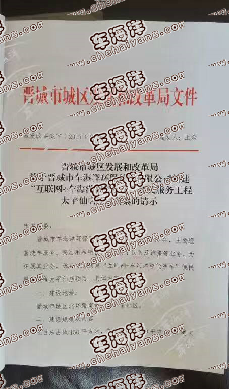 熱烈祝賀車海洋“互聯(lián)網(wǎng)+智能洗車”事業(yè)獲得山西晉城發(fā)改委試點立項支持!