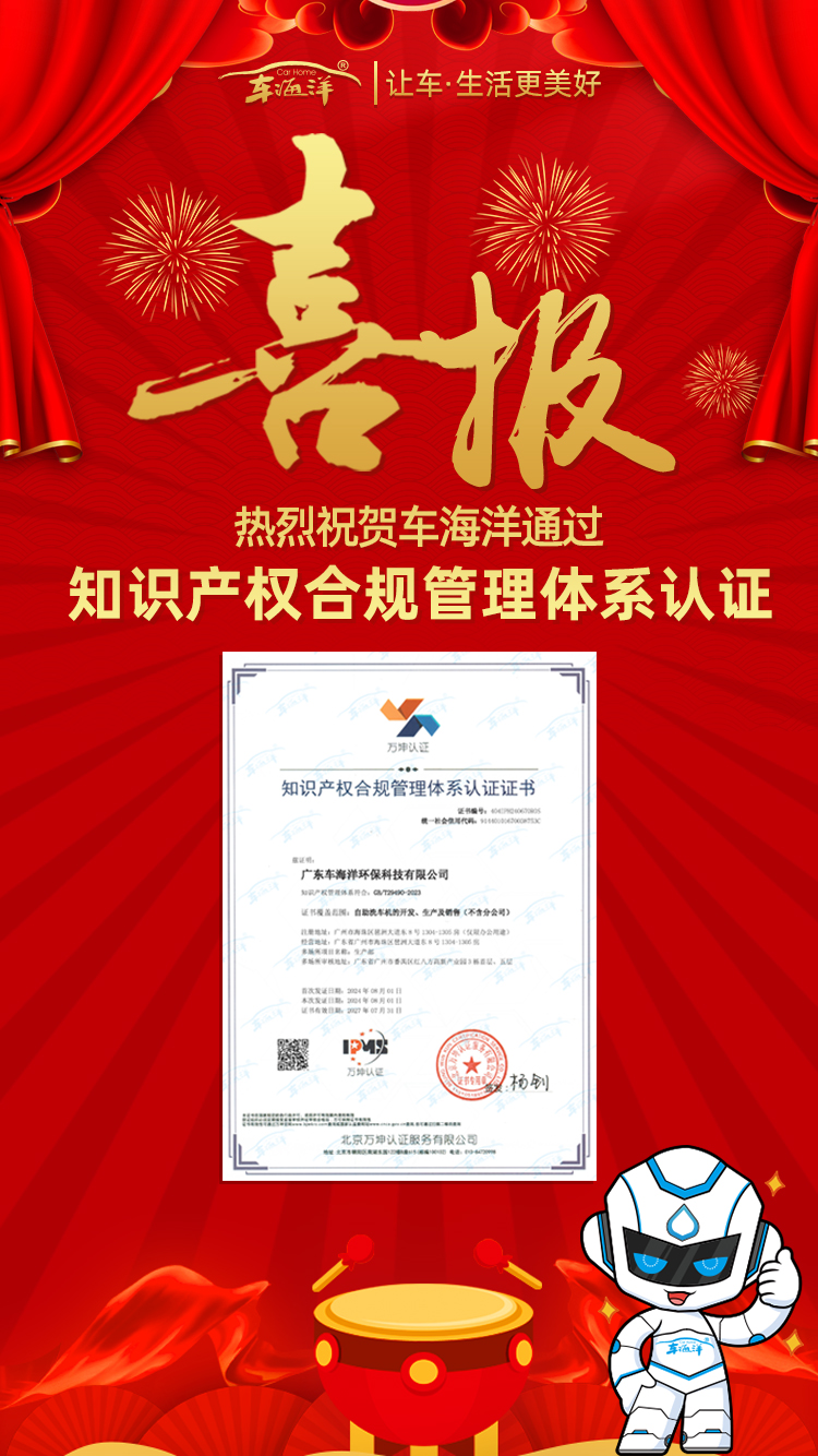 熱烈祝賀車海洋通過“知識(shí)產(chǎn)權(quán)合規(guī)管理體系認(rèn)證”
