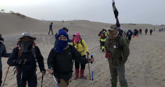 由于戈壁灘的特殊情況,這三天全程不能洗漱,組委會只提供基本的飲用水并沿途設(shè)置3個(gè)營地,提供牛肉干、水果等食物供學(xué)員補(bǔ)充能量。36度左右的高溫,加上隨時(shí)可能出現(xiàn)崴腳、扭傷、腳底起泡等等傷病,戈壁行可以說是對每一位參與者從身體素質(zhì)到意志力的重大考驗(yàn)。