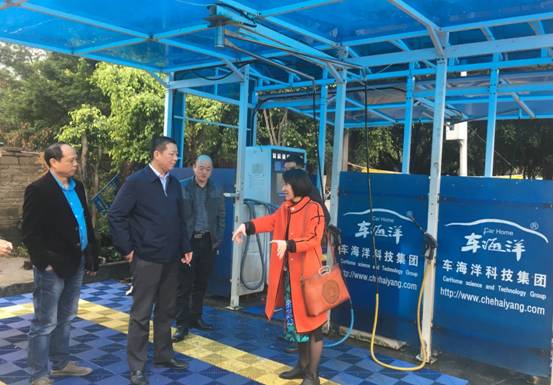 會(huì)后,陳區(qū)長和鄭書記一行在鄢總的陪同下前往車海洋位于廣州市內(nèi)的智能洗車站點(diǎn)進(jìn)行實(shí)地考察,仔細(xì)了解該項(xiàng)目的特點(diǎn)和運(yùn)營模式,在現(xiàn)場親身體驗(yàn)了車海洋自助洗車的方便、快捷、環(huán)保。