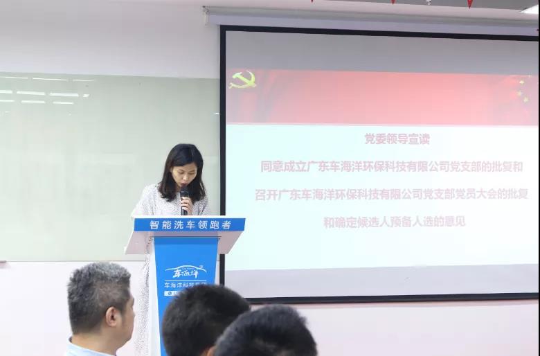 廣州市海珠區(qū)琶洲管委會綜合科副科長梁婕同志宣讀了《同意成立廣東車海洋環(huán)??萍加邢薰军h支部的批復(fù)和召開廣東車海洋環(huán)??萍加邢薰军h支部黨員大會的批復(fù)和確定候選人預(yù)備人選的意見》 ,并對車海洋科技集團(tuán)黨支部的成立表示熱烈祝賀并給予厚望。