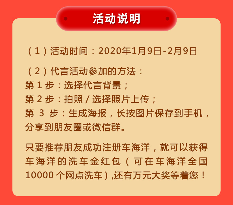 如果您覺得車海洋智能洗車好,誠邀您積極參與本次活動,為我們代言,將好東西分享推薦給朋友們!
