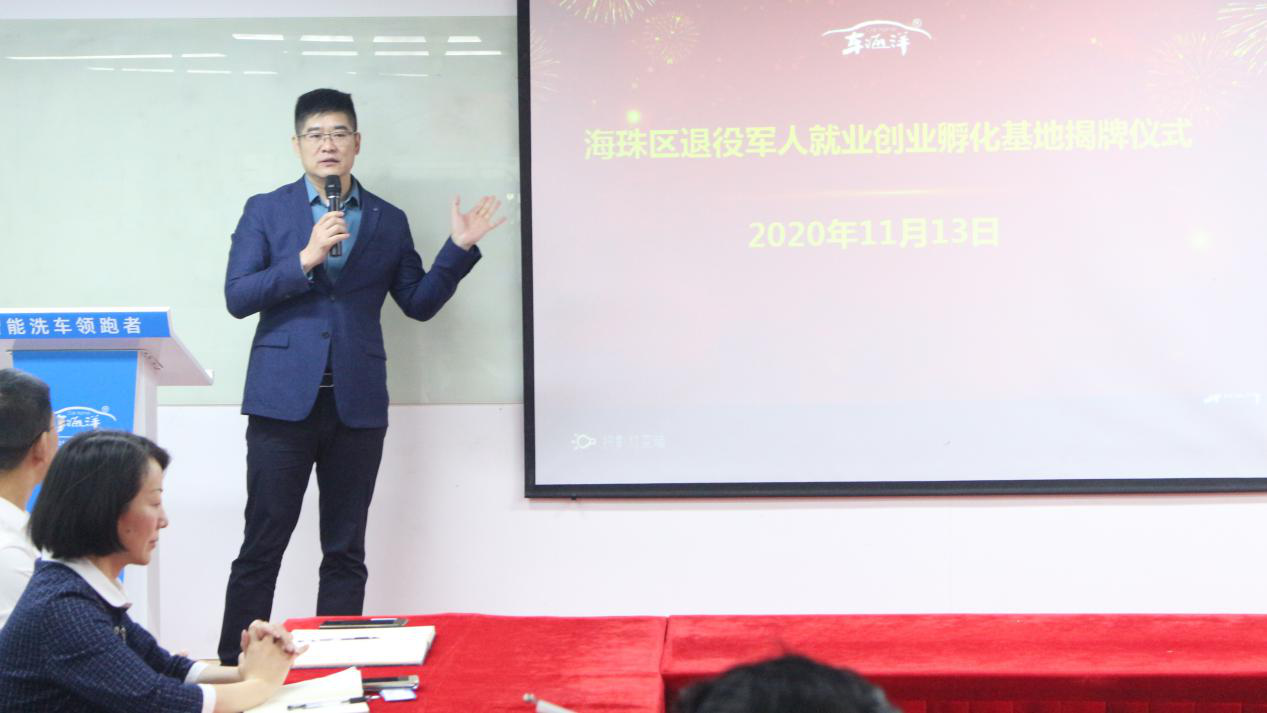 在國家出臺《中華人民共和國退役軍人保障法》之際,車海洋在廣州市海珠區(qū)退役軍人事務局的長期關(guān)懷和指導下,致力于為退役軍人提供有特色、精細化、針對性強的培訓服務,鼓勵和扶持退役軍人就業(yè)和成功創(chuàng)業(yè),取得了不俗的成績!黎廣淮副局長在會上鼓勵退役軍人“退伍不褪色”,希望抓住這難得的機遇大膽創(chuàng)業(yè),實現(xiàn)更大的人生價值。他充分肯定了車海洋這項“節(jié)能環(huán)保、便民惠民”的民生服務項目,接地氣,高頻剛需,是非常適合退役軍人剛創(chuàng)業(yè)時“無經(jīng)驗、能吃苦”等特點的優(yōu)質(zhì)項目,希望車海洋平臺能帶動更多的退役軍人就業(yè)和創(chuàng)業(yè)。