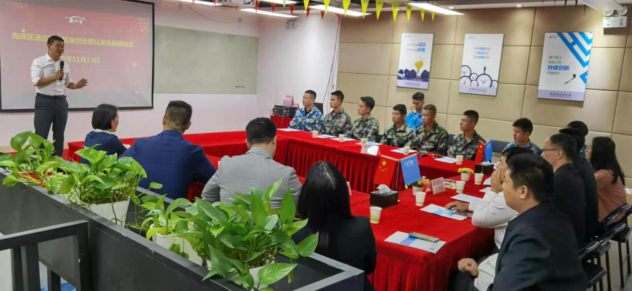 11月13日上午,車海洋科技集團總部舉行了隆重的“海珠區(qū)退役軍人就業(yè)創(chuàng)業(yè)孵化基地”揭牌儀式,廣州市海珠區(qū)退役軍人事務局黎廣淮副局長一行10多位嘉賓出席了揭牌儀式。