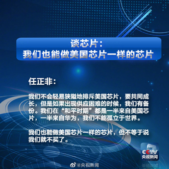 5月21日上午9點,任正非在華為總部接受中央廣播電視總臺記者采訪回應(yīng)熱點問題。