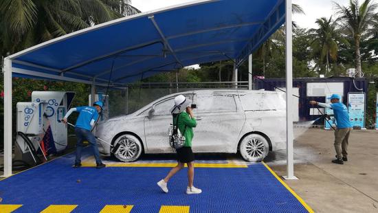 據(jù)現(xiàn)場工作人員介紹,洗車服務(wù)點(diǎn)開業(yè)后,從早上七點(diǎn)多左右便陸續(xù)有車輛前來洗車。現(xiàn)場工作人員都是參加過博鰲亞洲論壇2017年年會服務(wù)的精兵強(qiáng)將,因而服務(wù)水準(zhǔn)一流,效率高,海口及博鰲兩個(gè)洗車站點(diǎn),每天能完成400輛以上車輛的清潔、消毒及吸塵服務(wù),大大提高會務(wù)用車的利用率,為貴賓提供良好的用車環(huán)境和體驗(yàn)。會務(wù)司機(jī)張先生表示,海口這幾天都在下雨,因此接到任務(wù)的車輛,基本上每天都要洗兩次車,單靠傳統(tǒng)的人工服務(wù),完全是不可行的,而主辦方對車輛的清潔干凈有著苛刻的要求,因?yàn)榻铀偷亩际歉鲊馁F賓。只有車海洋智能洗車才能完成這個(gè)任務(wù),這讓他們的壓力也大大減輕,“我自己也是車海洋的會員,之前在海口多次使用,確實(shí)是不錯(cuò),實(shí)惠、快速,現(xiàn)在洗車基本上都不用排隊(duì)了,還省下不少洗車錢”,他笑著說。